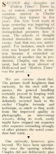Chaplin‘s first feature in five years.“ (...)