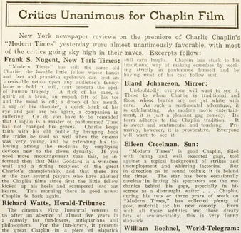 „Eileen Creelman, Sun: Modern Times is good Chaplin,
