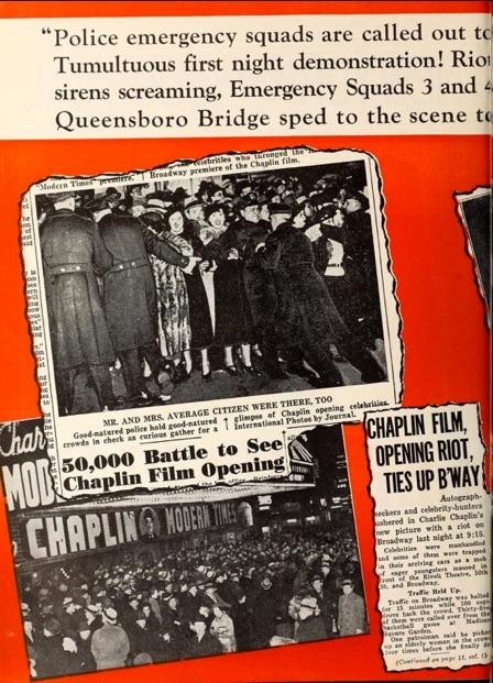 „Chaplin Film, Opening Riot, Ties Up B‘way“