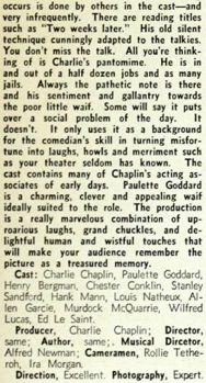 appealing to all classes and Chaplin scoring big.“ (...)