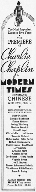 Modern Times premiere is in Los Angeles Feb. 12, 1936