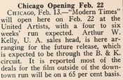 Chicago, Feb. 13 – „Modern Times“ will open here