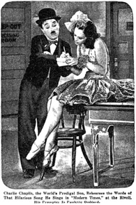 Times,“ at the Rivoli. His Prompter Is Paulette Goddard.