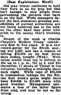 Chaplin‘s Wow $75,000 on B‘way“ (...)