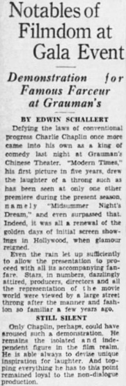 night at Grauman‘s Chinese Theater. Modern Times, his first