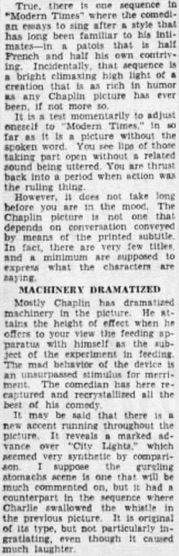 Editorial content. „,Modern Times‘ Proves Charllie Chaplin