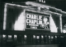 & Tivoli, exterior by night, electric sign Charlie Chaplin