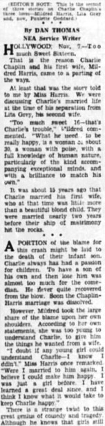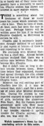 on Charlie Chaplin‘s three loves – Mildred Harris, Lita Grey