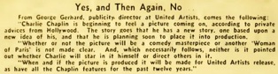 „Charlie Chaplin is beginning to feel a picture coming on,