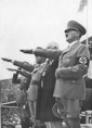 Adolf Hitler grüsst die Olympische Fahne, nachdem er die