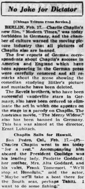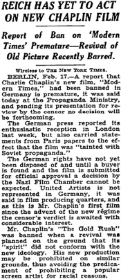 film, Modern Times, had been banned in Germany