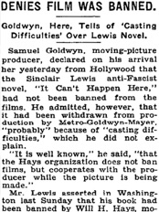 Goldwyn, Here, tells of „Casting Difficulties“