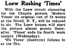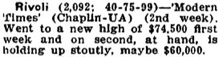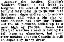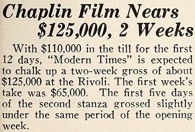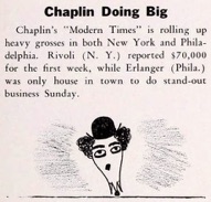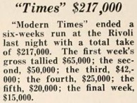 Chaplin‘s „Modern Times“ is rolling up heavy grosses in both