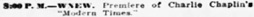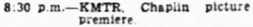 8:30 p. m. – KMTR. Chaplin picture premiere.