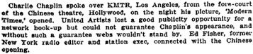 „Charlie Chaplin spoke over KMTR, Los Angeles“