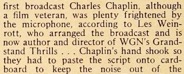 8:00 P. M. – WNEW. Premiere of Charlie Chaplin‘s