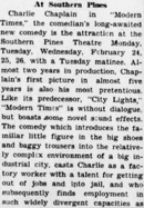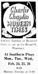 & At Southern Pines. Charlie Chaplain in „Modern Times,“