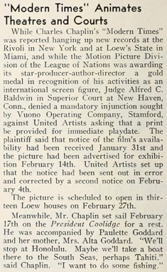 Meanwhile Mr. Chaplin set sail February 17th on the
