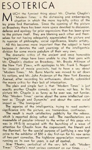 Modern Times. Mr. Burns Mantle was moved to set down his