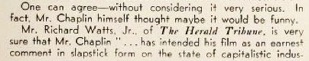 Chaplin‘s shadow on Broadway. Mr. Brooks Atkinson