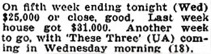 (5th week). On fifth week ending tonight (Wed.) $25,000