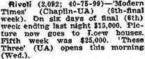 (6th) week of „Modern Times“ (UA) reported at $15,000.