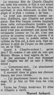 „Voyez les Temps modernes. Et dites si Chaplin a vieilli“