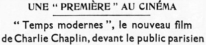 ,Temps modernes,‘ le nouveau film de Charlie Chaplin,