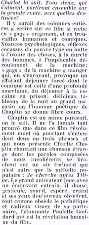 Paulette Goddard qui est la révélation humaine du film.“ (...)