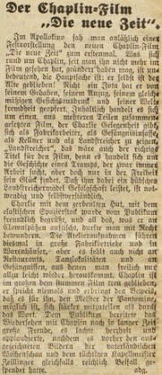 den neuen Chaplin-Film Die neue Zeit zum erstenmal.