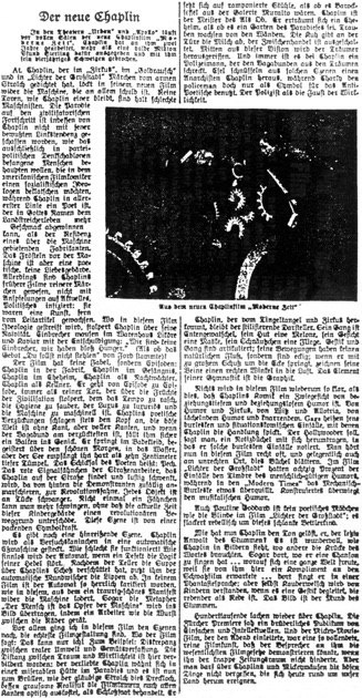 Photo. „Aus dem neuen Chaplinfilm Moderne Zeit“
