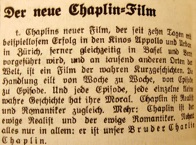 t. Chaplin‘s neuer Film, der seit zehn Tagen mit