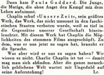 (...) „CHARLIE CHAPLIN IST TOT“, ABC, Zürich, 1937/1938