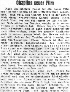 Redaktioneller Inhalt. „Chaplins Neuer Film