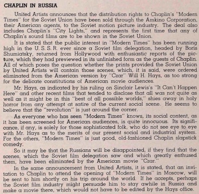 to Chaplin‘s „Modern Times“ for the Soviet Union