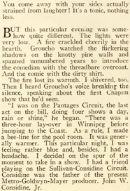 with laughter. I looked at the stage and saw Chaplin for the