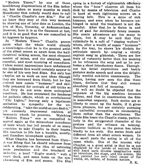 Robert Kemp, Guardian, Manchester, England, July 14, 1936.