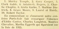 1. Shirley Temple, 2. Gary Cooper, 3. Clark Gable,