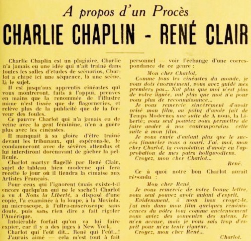 „A propos d‘un procès Charlie Chaplin - René Clair“