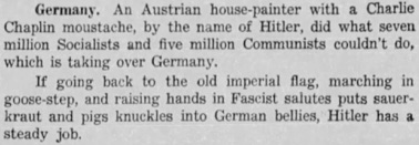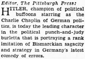 finest traditions. Hitler, with his Charlie Chaplin mustache