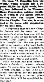 Charles Chaplin finished „City Lights,“ two years ago, Miss
