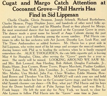 Editorial content. „Cugat and Margo Catch Attention at Cocoanut