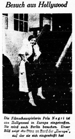 Die Filmschauspielerin Pola Negri ist aus Hollywood