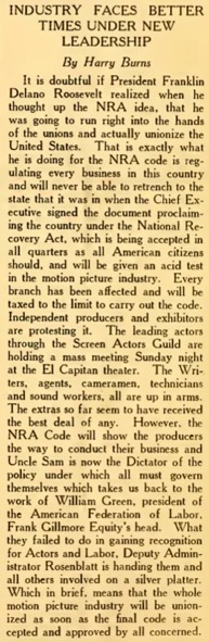 from Hollywood on behalf of the NRA, Oct. 23, 1933,