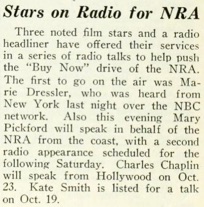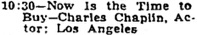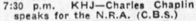 7:30 p.m. KHJ – Charles Chaplin speaks for the N.R.A.