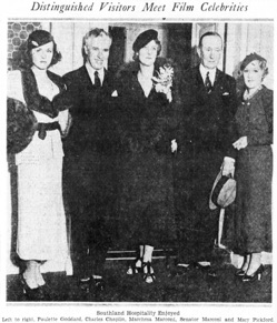 Left to right, Paulette Goddard, Charles Chaplin, Marchesa