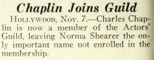 Hollywood, Nov. 7. – Charles Chaplin is now a member