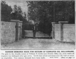 kidnappings of which that of William F. Gettle, millionaire Beverly