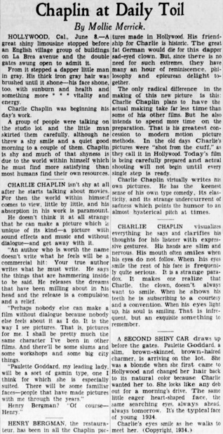 Editorial content. „Chaplin at Daily Toil