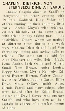 Charlie Chaplin dined at Sardi‘s in Hollywood the other